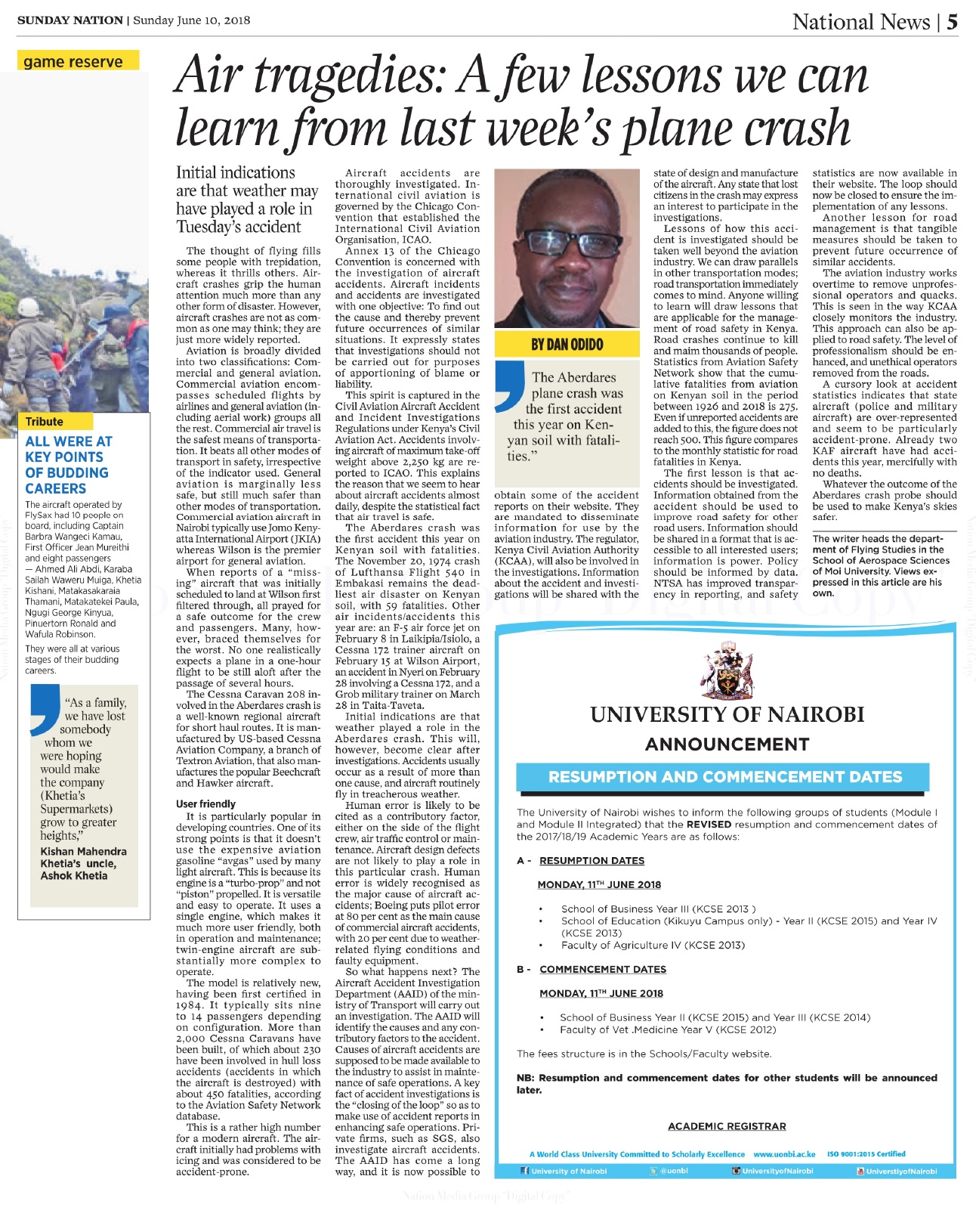 - Air tragedies: A few lessons we can learn from last week’s plane crash Sunday Nation, June 10, 2018 JPEG